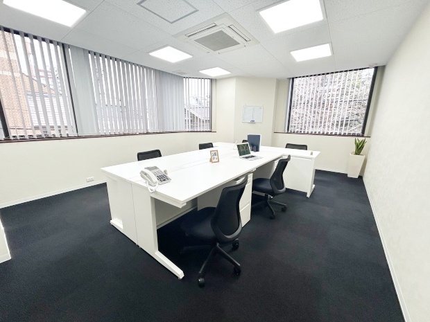 最大5名様まで収容可能な広々としたお部屋です。西向きの窓からは隣接した松原公園のを望め開放感抜群!事務所移転や支店開設におすすめです。室内にはデスク・椅子・キャビネット・ホワイトボード・日程ボード・ビジネスフォンをご用意しております。